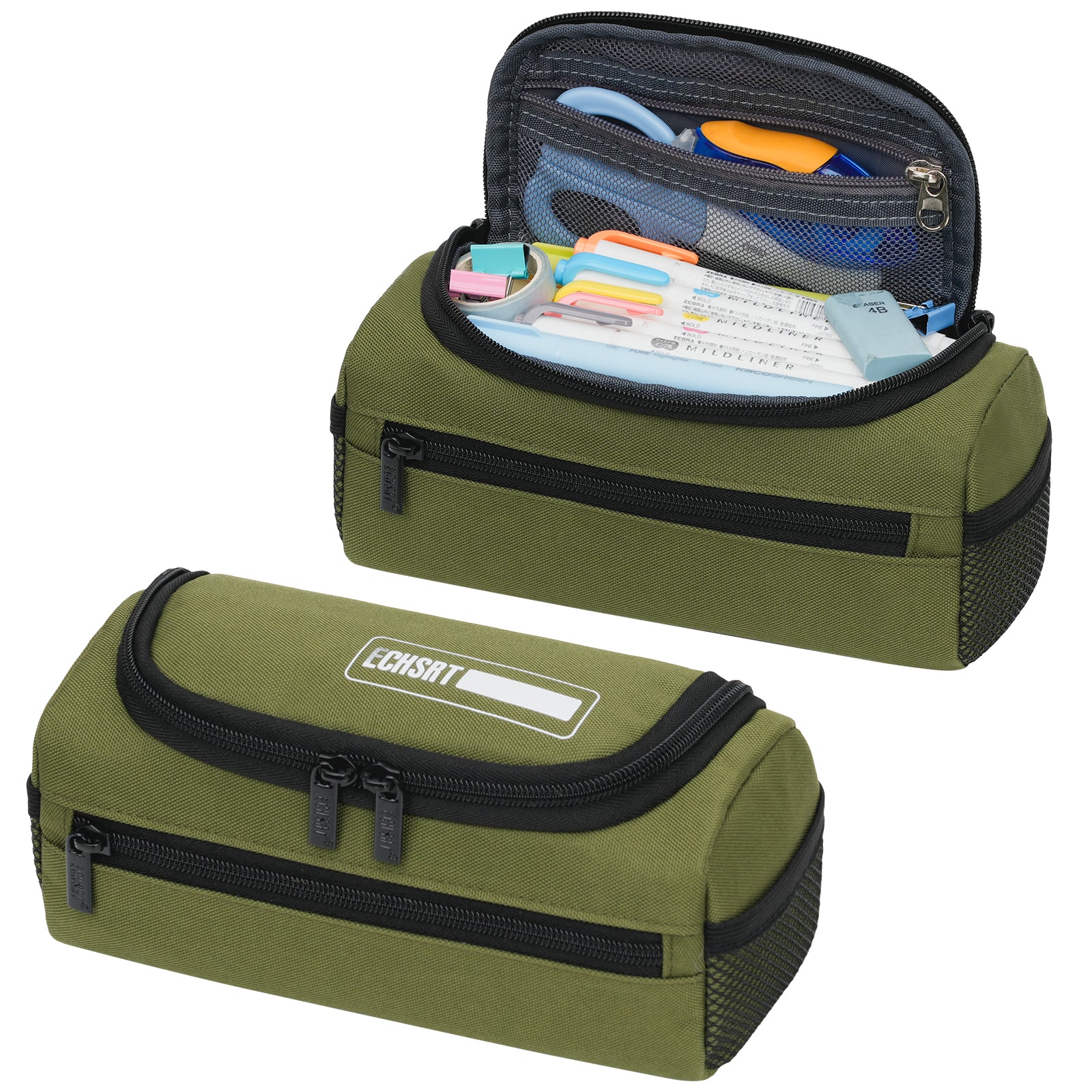 ECHSRT Jumbo Pencil Case Organizer for Men Women, Extra Large Capacity Pencil Pouch, Sturdy Portable Storage Bag for Office Travel Supplies - Blue